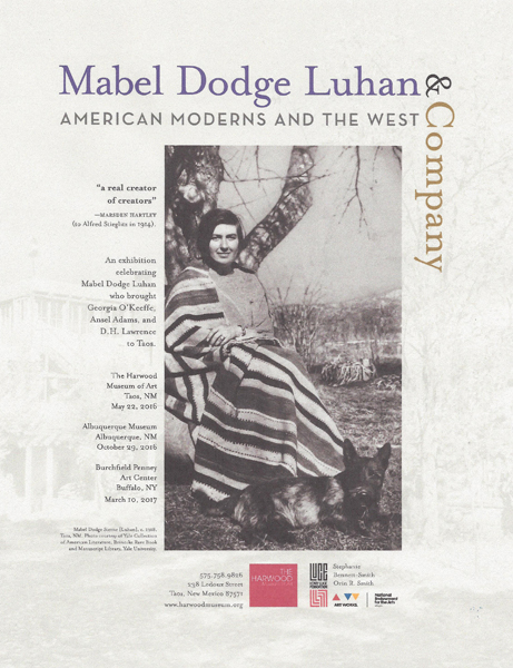 Late summer into winter 2015 the show began making news. A full-page ad appeared in the August issue of Art in America. A press release, “The Harwood Museum of Art Announces New Traveling Exhibition Mabel Dodge Luhan & Company: American Moderns and the West Opening in Taos,” went out in December.